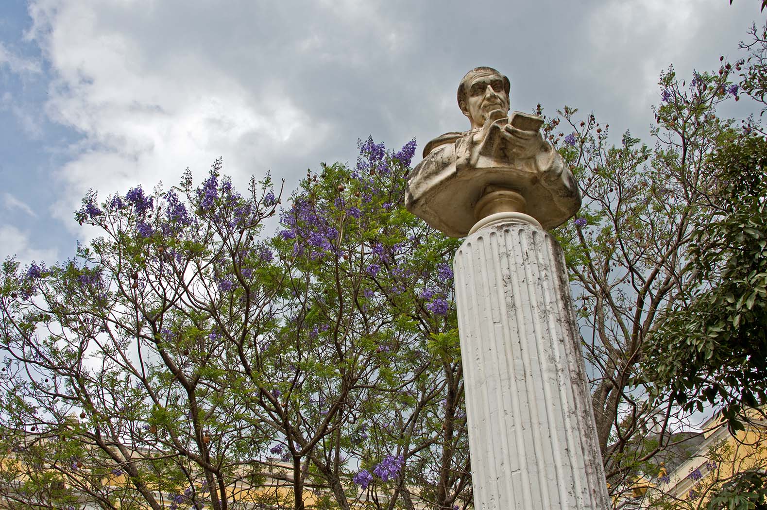 教会前の広場に咲くジャカランダ