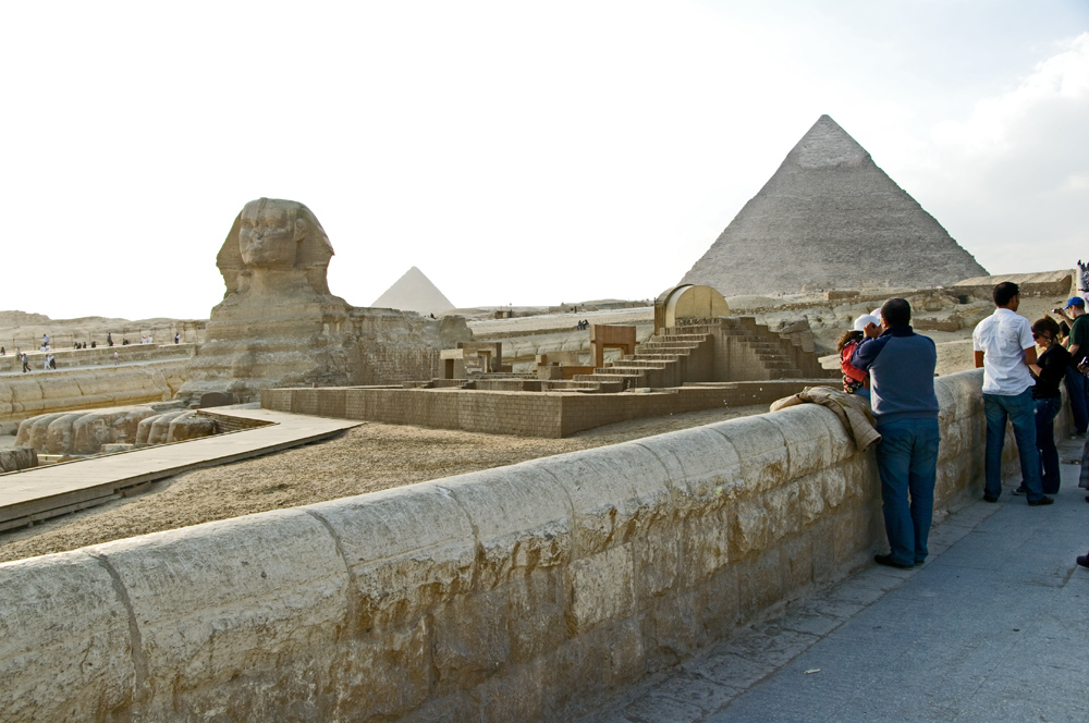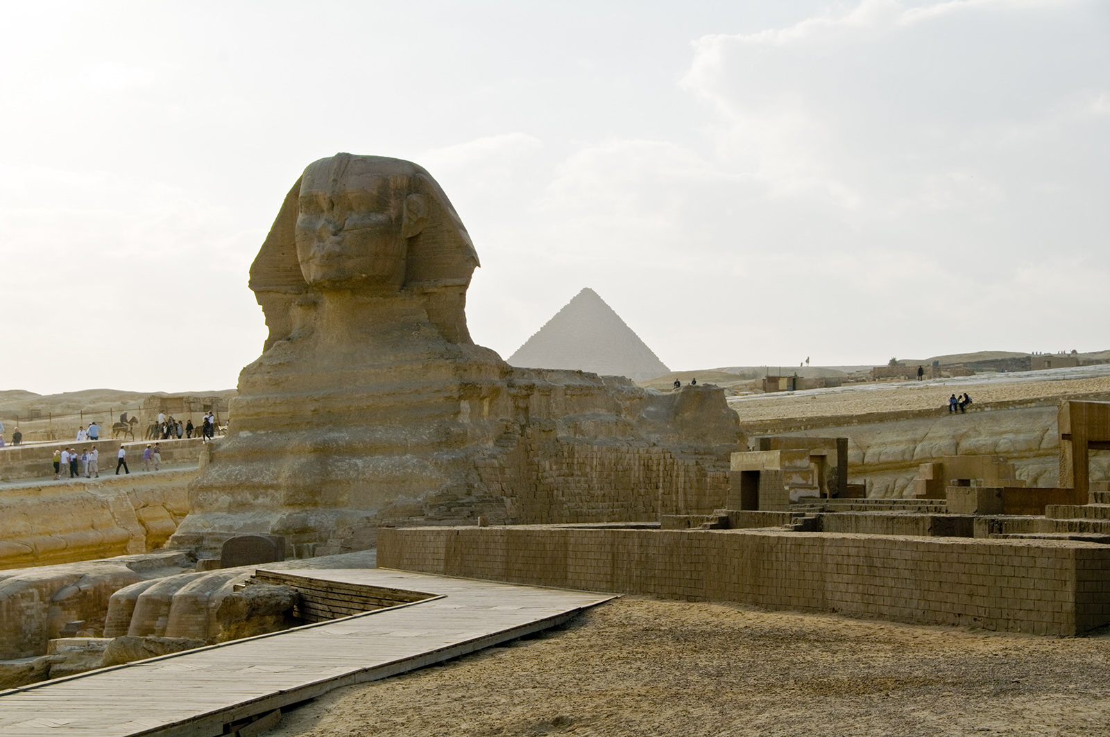 大スフィンクスは「西方(冥界の入口)の守護者」として歴代の王に信仰された。アビュドスにあるエジプト初期王朝時代第1王朝のアハ王の地下墳墓の傍に、他数の殉死死体とともに、権力の象徴であるライオンの埋葬も発掘からわかっている。この風習が、ピラミッドの傍に人間の頭とライオンの胴体とを合わせ持つスフィンクス建造につながるとも考えられている。一説には、スフィンクスはホルス神の数ある姿の一つともされる。 |
