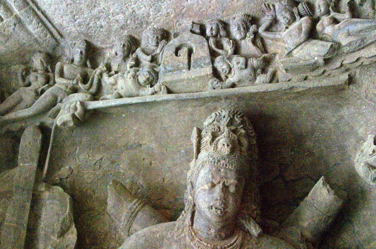 アラビア海の小島エレファンタ島に5〜8世紀に建設された7窟のヒンドゥー教の石窟寺院.
