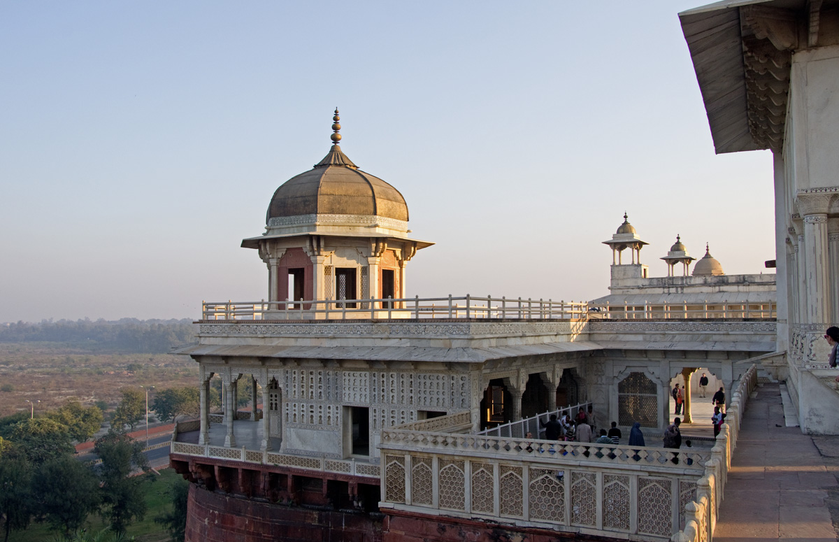 アーグラ城はヒンドゥーとイスラムの建築が融合したムガル帝国の代表的建物.