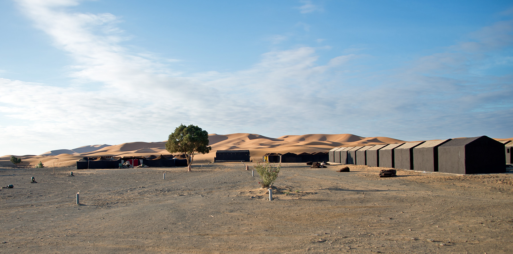 ここで朝食(砂漠とラクダの小屋)