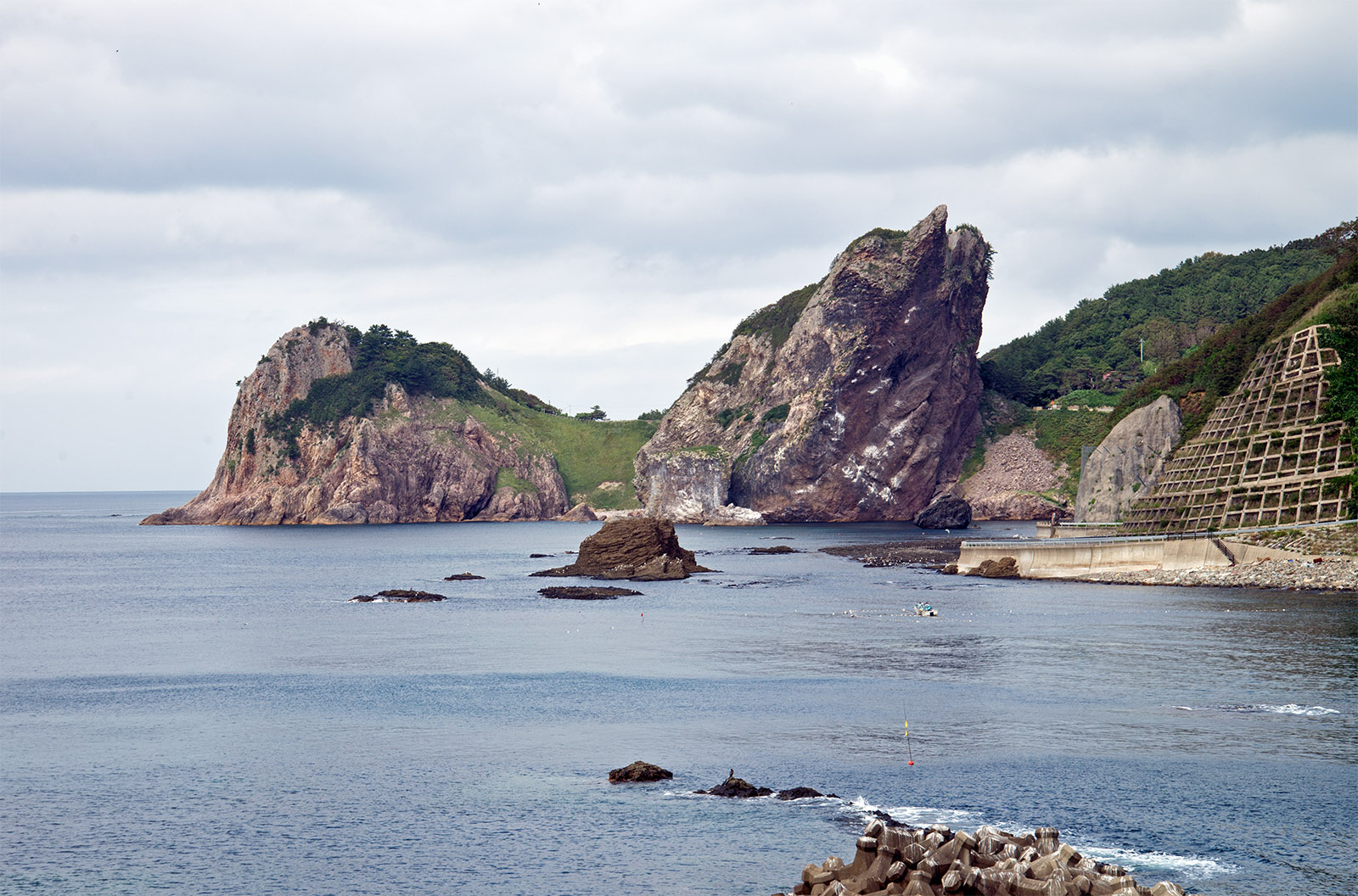 佐井港から海岸の景色を楽しみながら仏ヶ浦方面にドライブ。海岸に巨大な岩があり、社が祀られている。
