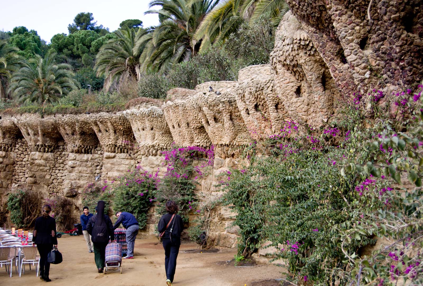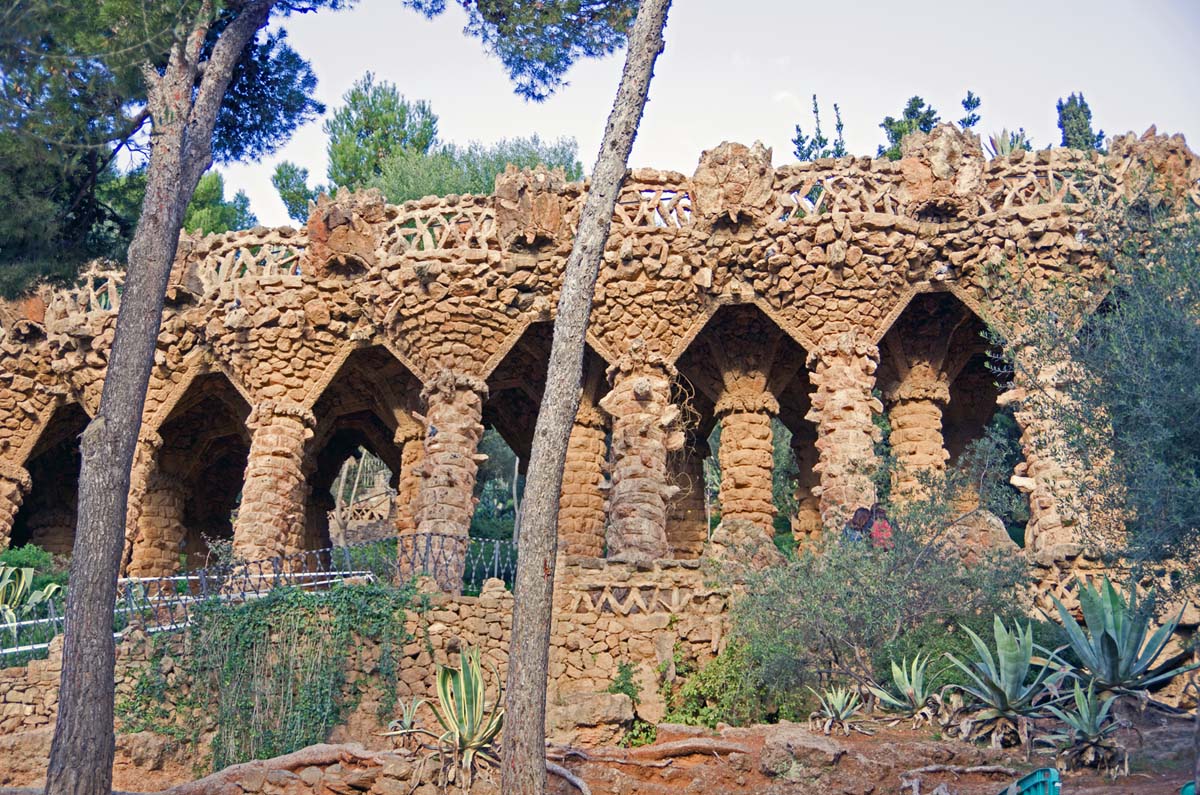 1900ー1914年に、エウゼビ・グエイ(グエル)伯爵とアントニ・ガウディの夢で作り上げようとして建造された分譲住宅である。この頃、バルセロナでは工業化が進んでいたが、それに対して人々が自然と芸術に囲まれて暮らせる、新しい住宅地を作ろうとした。しかし、進みすぎた発想と自然の中で暮らす価値観は当時理解されず、広場、道路などと60軒が計画されたが、結局売れたのはガウディ本人とグエル伯爵の2軒でだけであった。伯爵の没後に工事は中断し、市の公園として寄付され、住宅の一つはガウディ記念館としてガウディがデザインした家具などが展示されている。