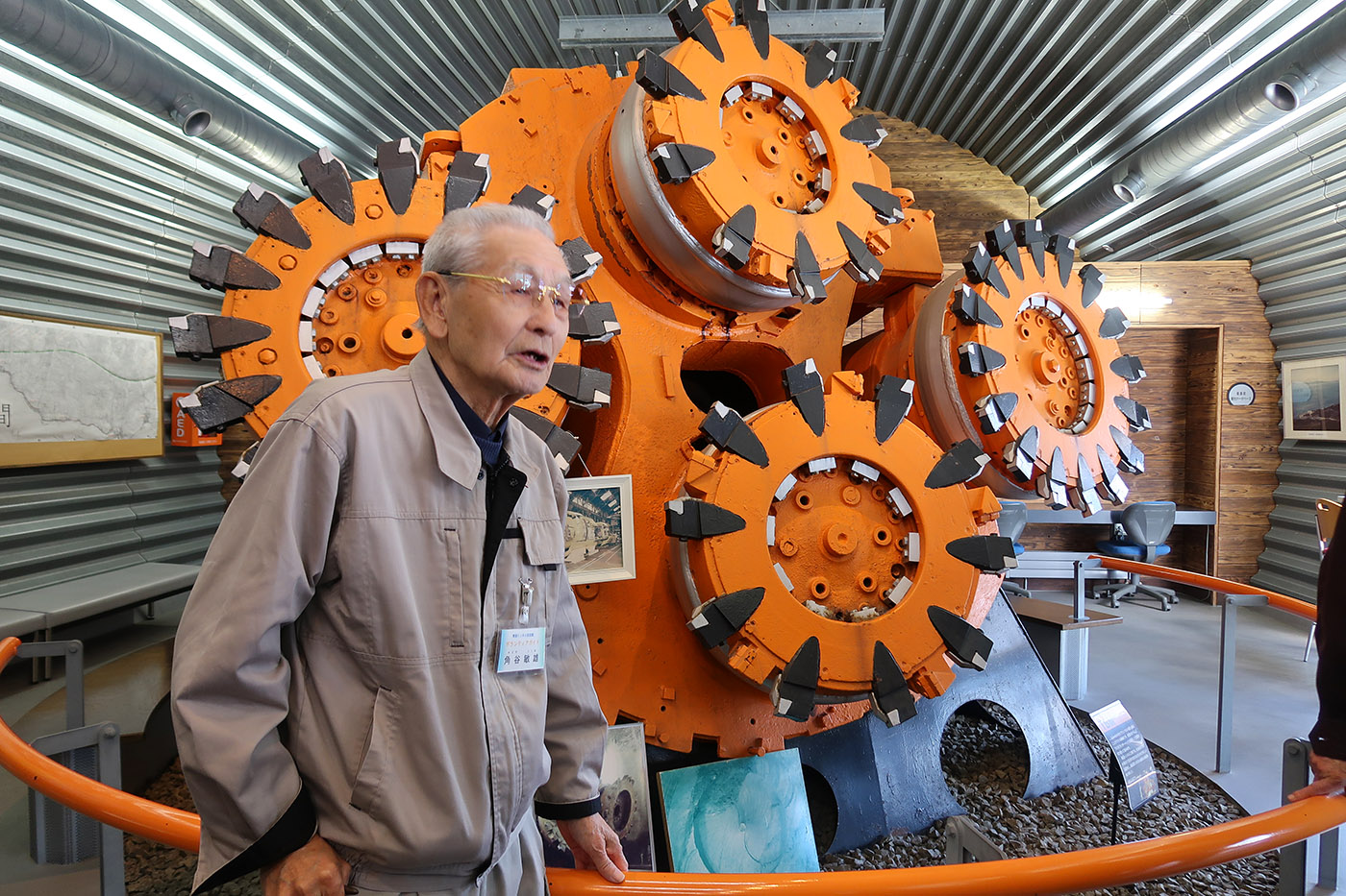 青函トンネル記念館 19年間工事に携わった角田さんの説明