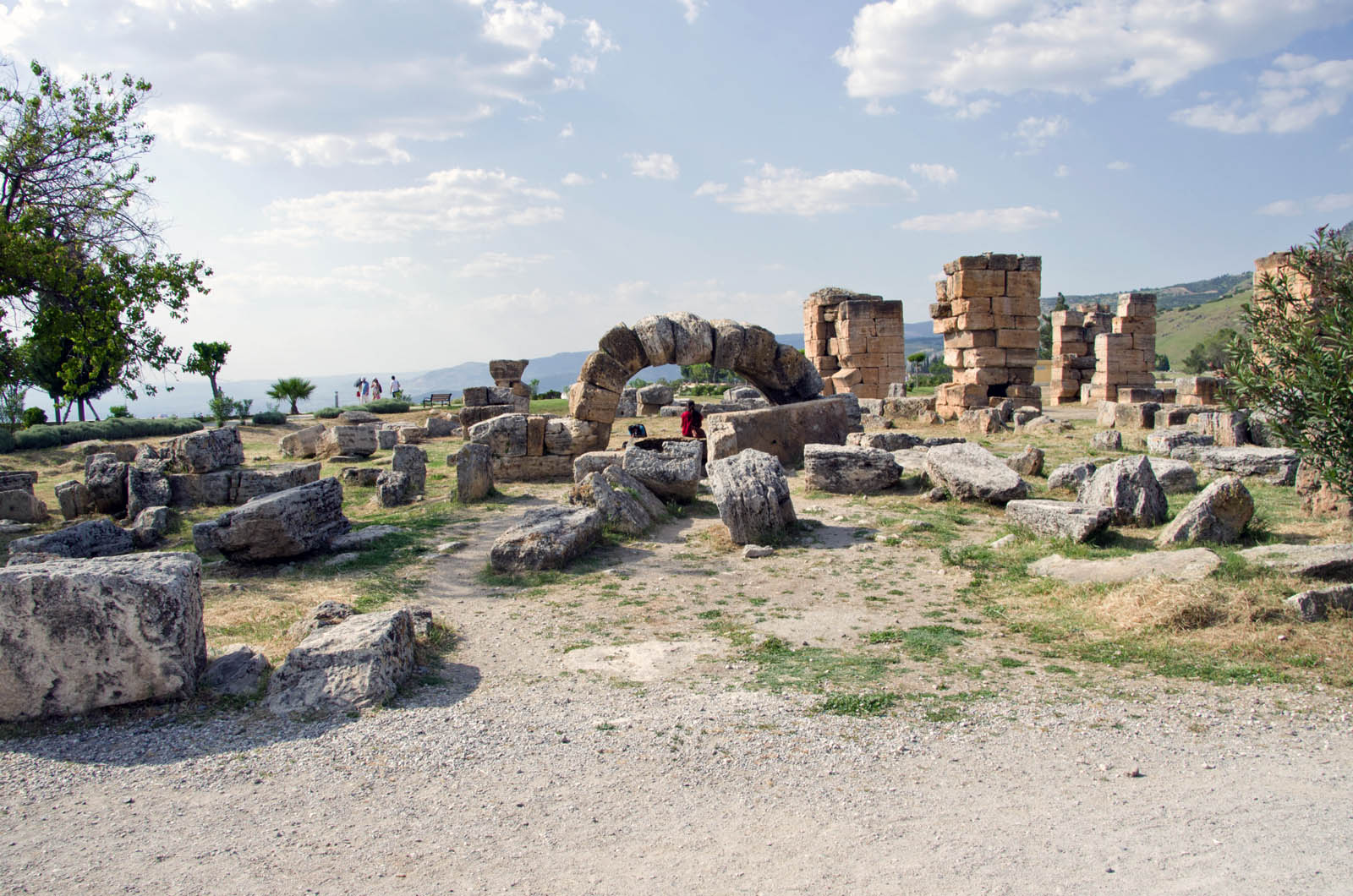 ヒエラポリス-パムッカレ トルコ西部・デニズリ県にあるユネスコの複合世界遺産 パムッカレは石灰華段丘からなる丘陵地の名前であり、2世紀頃にヒエラポリスというローマ帝国の都市があり、現在は遺跡が残る。