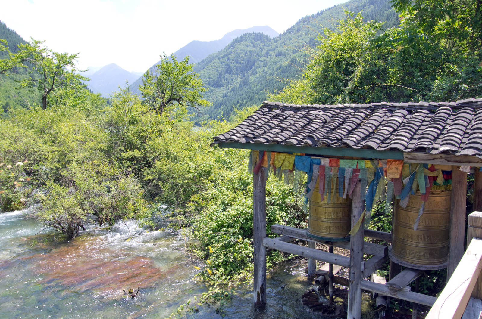 樹正群海の沿岸には、古い粉ひき場とマニ車があり、水流によって止まることなく回転しています。
