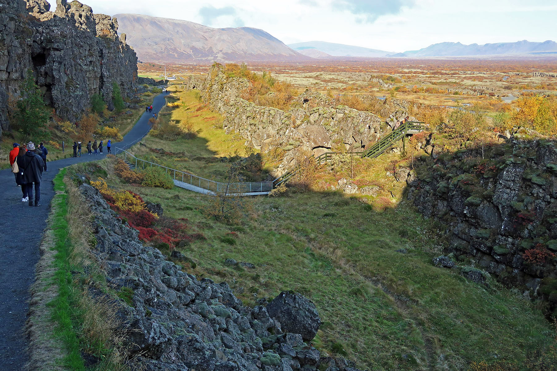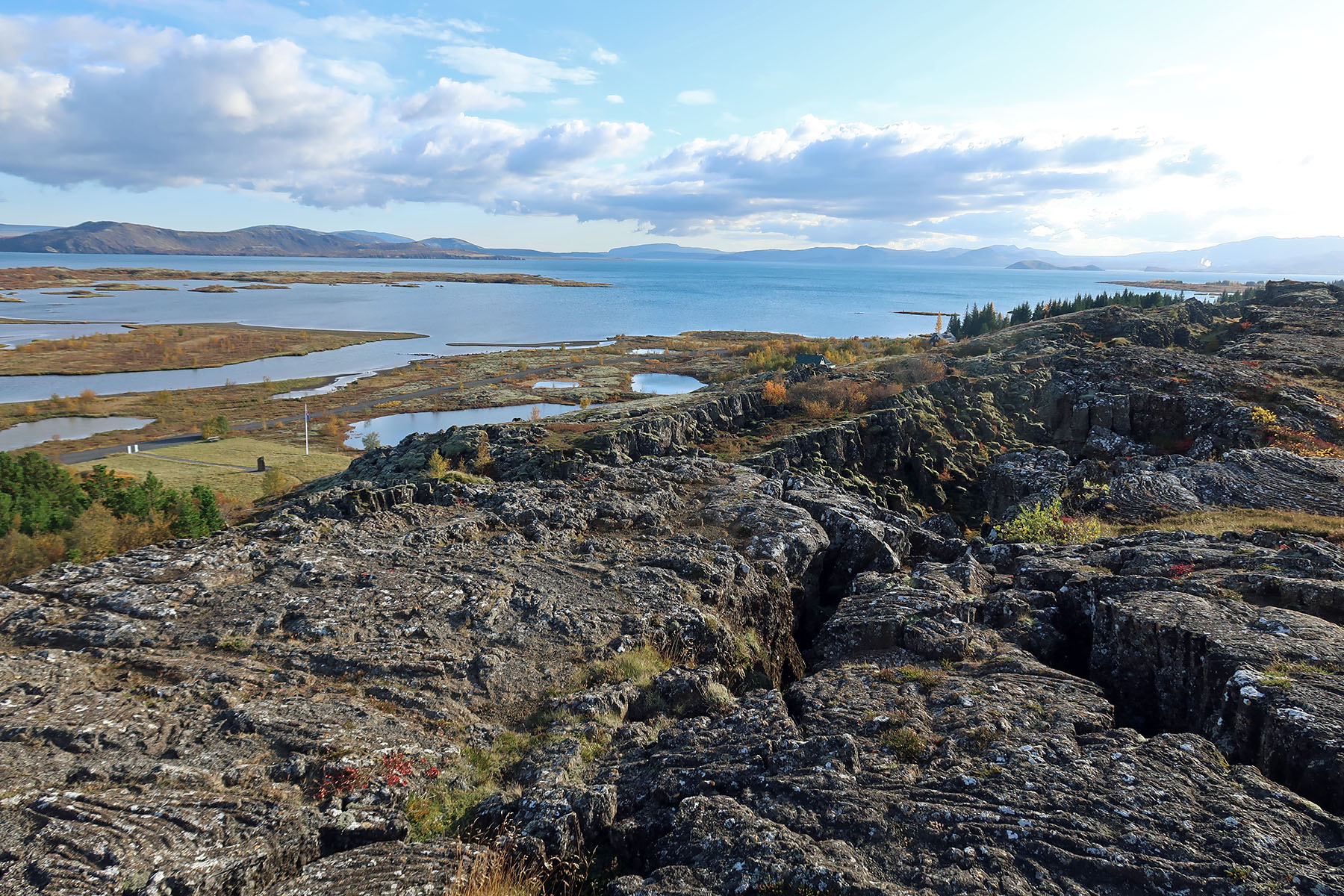 シンクヴェトリルの西端に位置する長い溶岩割れ目断層アルマンナギャゥ(Almannagj?)の西の一帯は